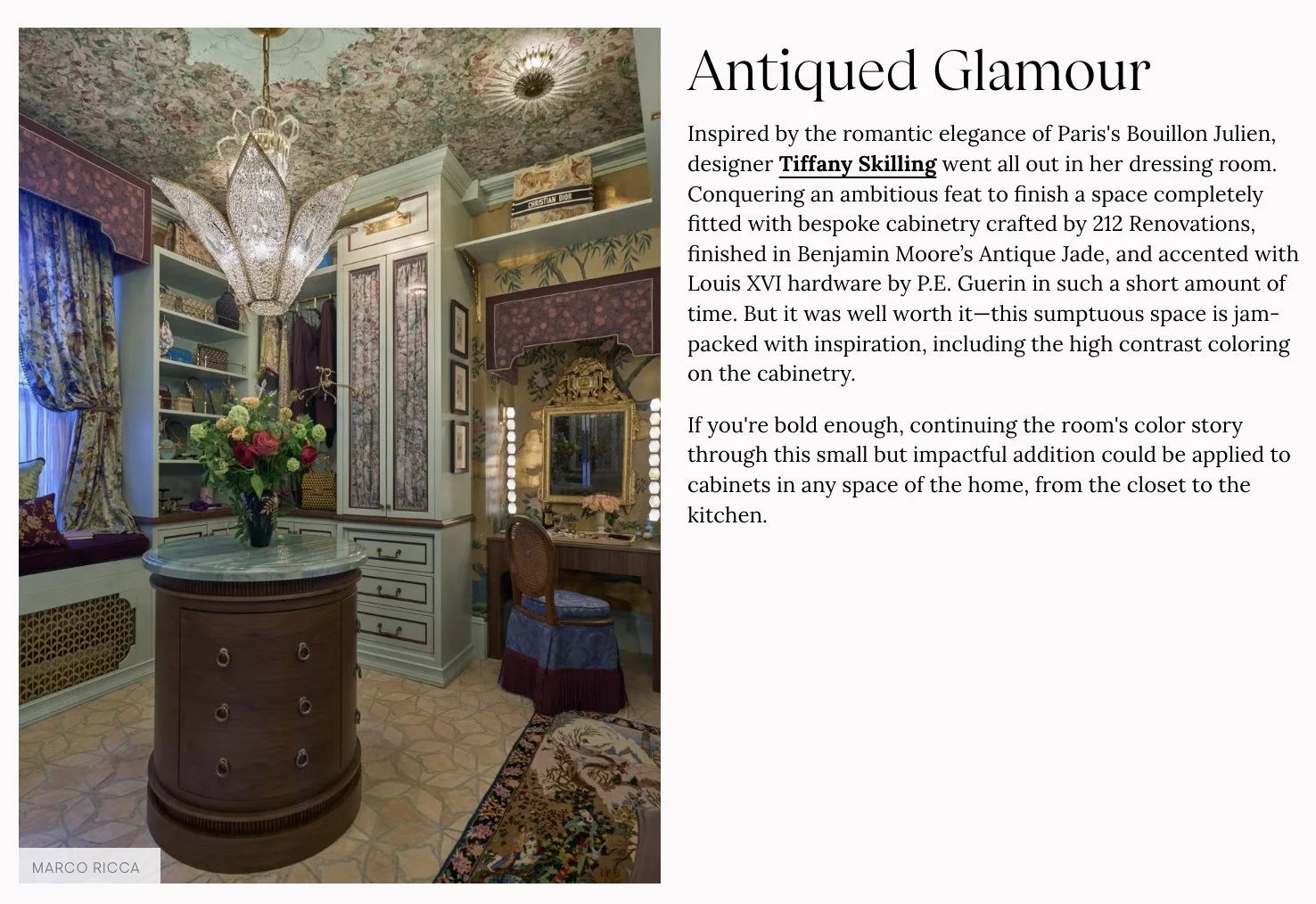TSI's Kips Bay room design highlighted for its "Antiqued Glamour".